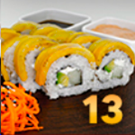 Rollo empanizado con panko, por dentro Philadelphia, aguacate y pepino, sobre el rollo boneless con salsa búfalo, mango o habanero a escoger sobre una cama de tampico.