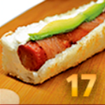 Aguacate, pepino y philadelphia por dentro. Cubierto de salmón fresco.