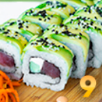 Atún, pepino y philadelphia, por fuera aguacate y mix de ajonjolí, acompañado de salsa de anguila.