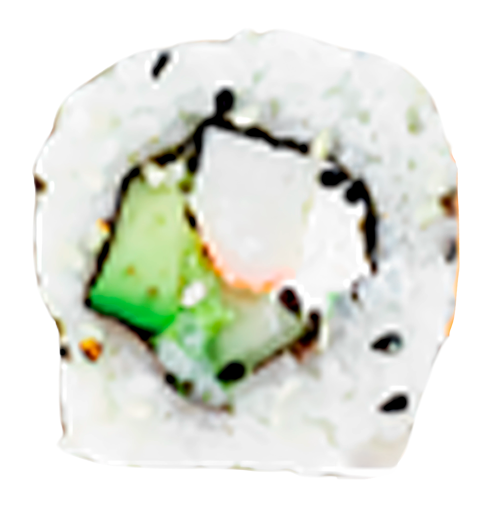 Camarón, aguacate, pepino y philadelphia, acompañado de tampico.